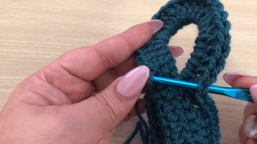 Pradedant nuo kitos eilės, visas pagrindinės eilės stulpelius (kb) mezgame per užpakalinę kilpą. Eilutę visada pradedame kėlimo akimis. Ši eilutė mezgama tik su kb. Kai pasiekiame grandinines akis, kb mezgame per žiedą. Viename akyje yra 24 kb. Pirmojo žiedo kb viršų sujungiame su paskutiniojo kb viršumi ir tada tęsiame pagrindinės eilės kb mezgimą.